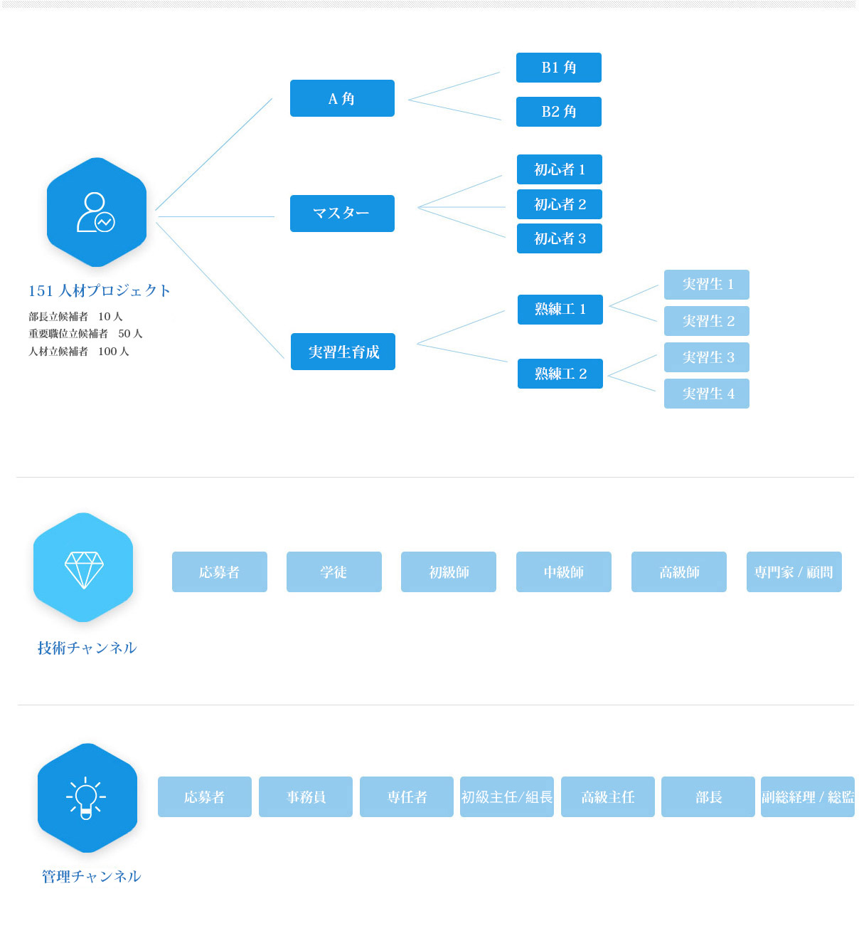 2018年は會社が上場する前に急速に発展する一年で、人材へのニーズが拡大する一方です。企業(yè)発展の狀況を考え、會社が人材バンクメカニズムを考案し、重要職位に能力のある人材が任用できるように人材立候補者を育成します。會社は「AB角」、「熟練工が初心者を教える」、実習生育成などのやり方で方正會社の「151人材プロジェクト」を確実に実行しています。